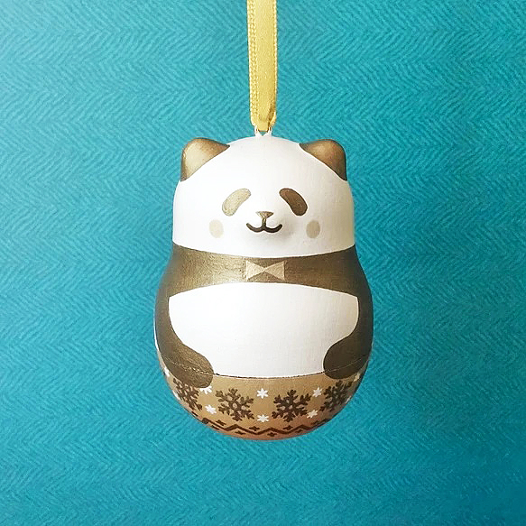パンダの手描きオーナメント。パンダ好きさんにはたまらない一品。底が開くのでプレゼントを入れても◎