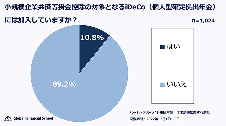 次は、これまで年末調整の申告を1回以上経験したことがあると回答した、全国のパート・アルバイトの主婦 1024名を対象にアンケートをとったところ、自身名義の iDeCo や ふるさと納税 に取り組む人は約1割しかいなかったという事実も。