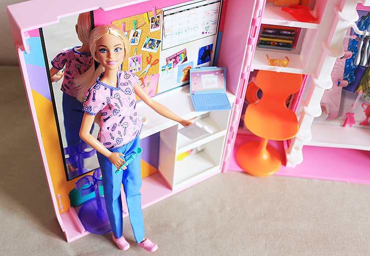 バービーの美しい姿が鏡に映る姿や、パソコンデスクでおしゃれにテレワークをこなす姿、ナース服(これも海外っぽい)パーティファッションなど、もう無限に無心になって楽しめる!