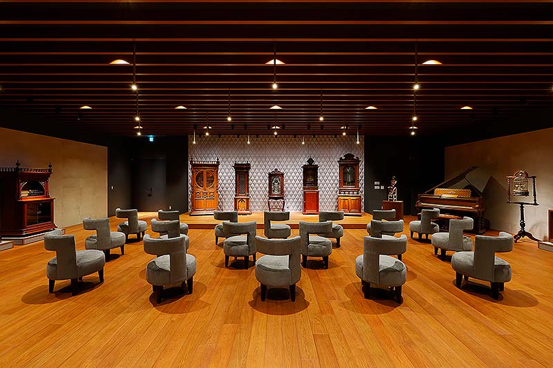 作品を展示するだけではなく、自動演奏楽器の歴史に残る100年以上昔につくられたオルゴールやオートマタの音色と“カラクリ”に没入できる、体験型施設としても知られる。