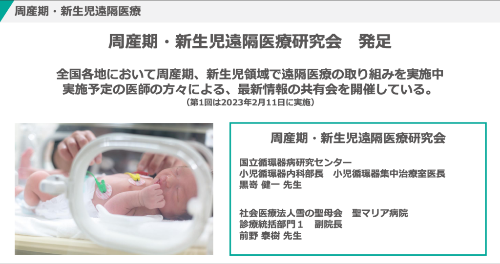 同社デジタルヘルスケア事業部で事業部長を務める池田孝史氏は「遠隔医療ソリューションの利用」について言及。現在100件以上の大学病院などと関係を構築しており「僻地医療における巡回の実証実験」、「感染症対策」、「周産期・新生児遠隔医療」などの取り組みを紹介しました。