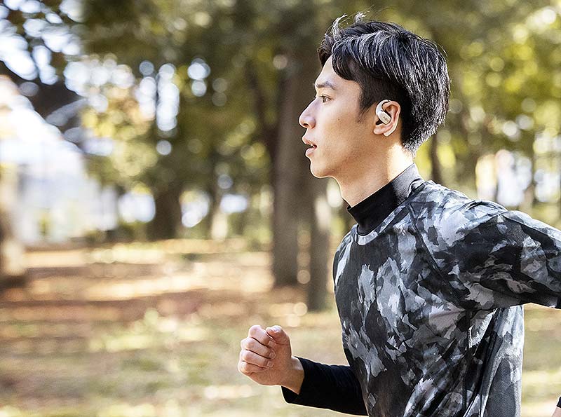 超軽量なうえにオープンイヤーだから、聴きたい音と周囲の音の両方がクリアに届く。