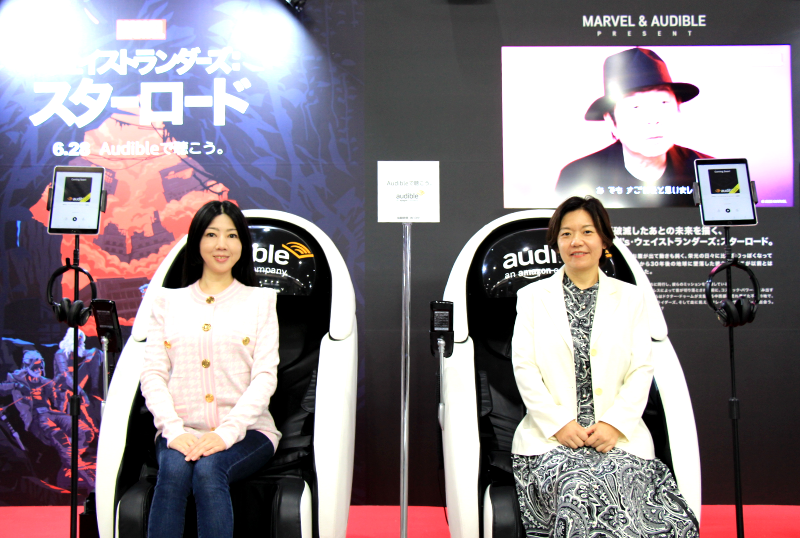 大阪コミコン2023の Amazon オーディブル コーナーに初日に駆けつけたアマゾンジャパン オーディブル事業部 逢阪志麻 ジャパンカントリーマネージャーと、同 キーリング宮川もとみ シニア コンテンツ ディレクターはこう教えてくれた。