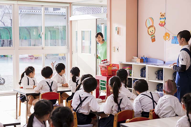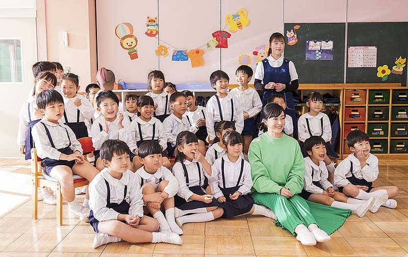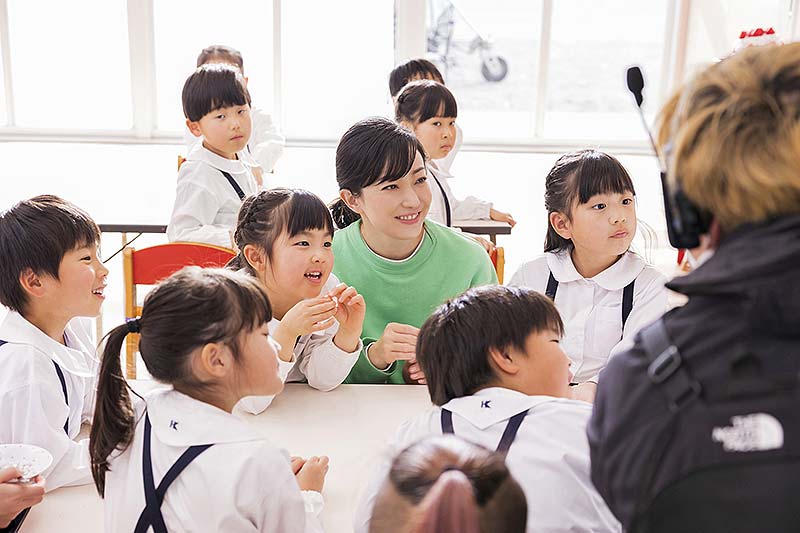 「よろしくおねがいしまーす!!!」と元気いっぱいな園児たちに迎えられた菅野美穂は、「みんなすごーい、立派!」と思わず拍手。