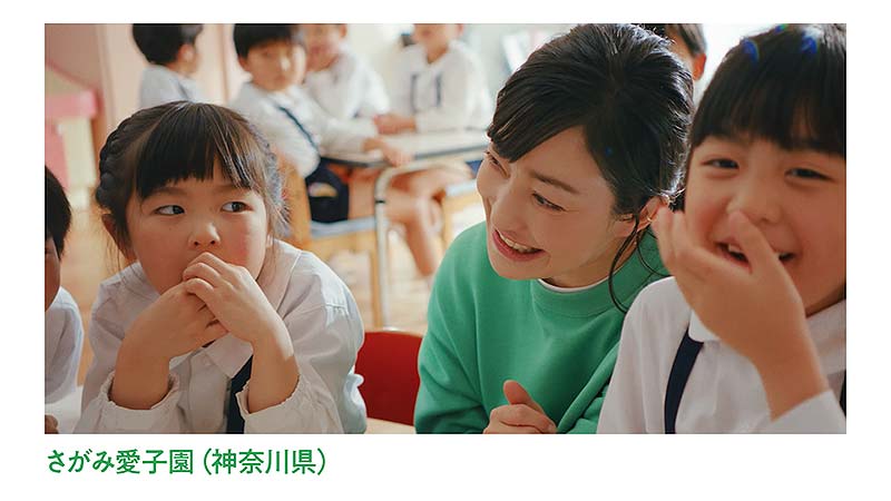 今回のTVCMでは全国の約60の保育園・幼稚園のうち「さがみ愛子園」(神奈川県)、「みどりの風子ども園ひろた」(青森県)、「とうみょう子ども園」(福島県)で撮影した。