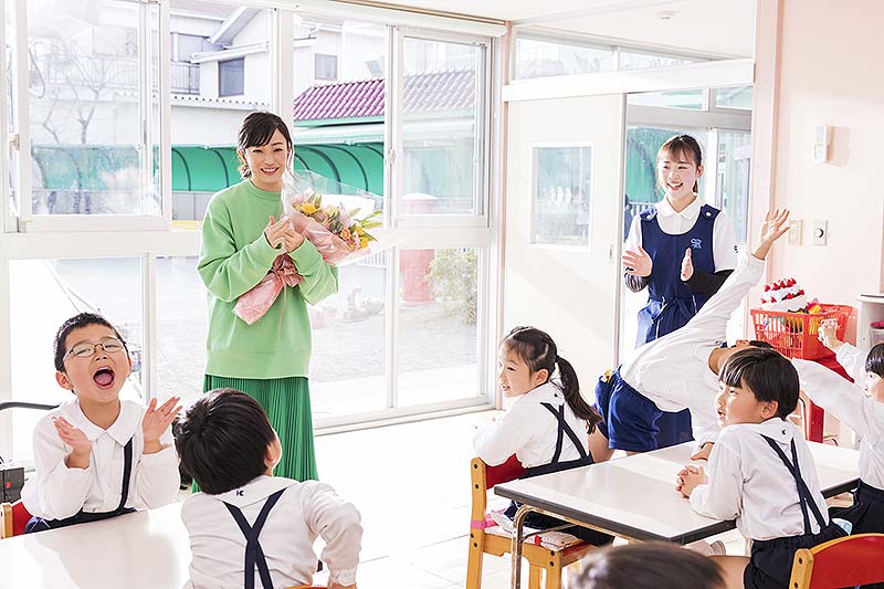 すべての撮影が終わると、出演していた園児たちがサプライズで花束を菅野美穂に手渡すと、感激したようすで、「みなさーん、きょうは撮影に参加してくれてありがとうございました。とっても上手でした!!」と笑顔で現場を去っていったという。
