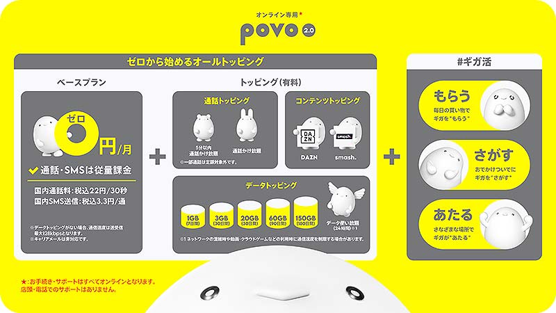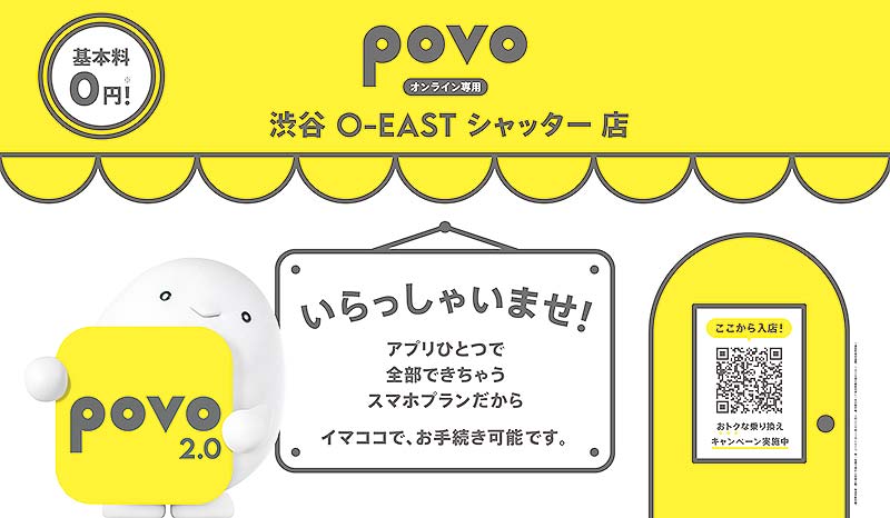 このタイミングにあわせて、いち早く動いたのが、au のオンライン専用ブランド 基本料 0 円の「povo2.0」。