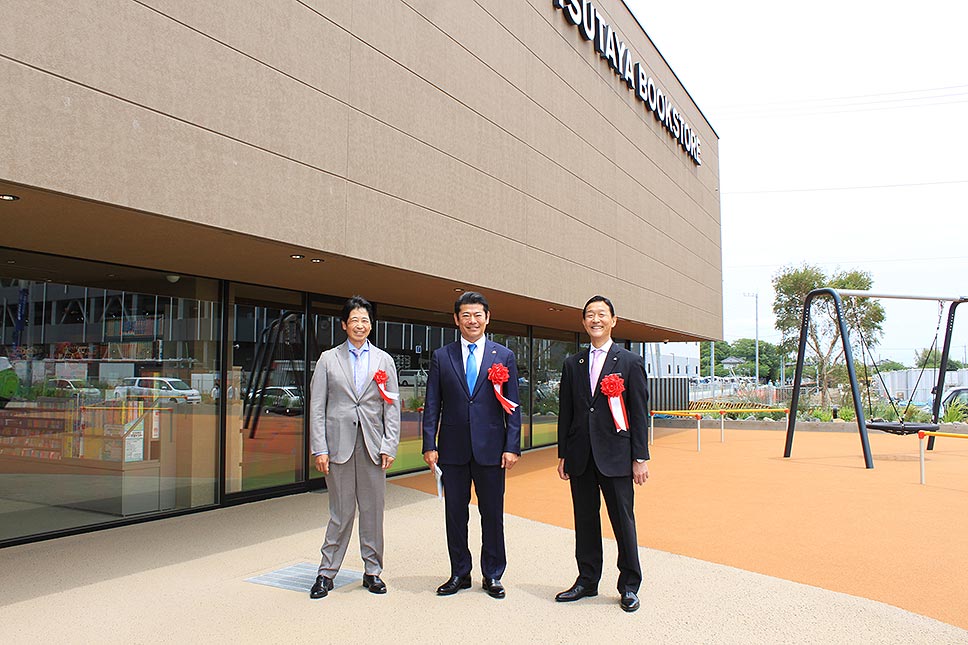 同社が描くまちづくりプランのもと、最先端の技術を取り入れた農業施設、物流拠点や道の駅、「BOOK & CAFE」スタイルの『TSUTAYA BOOKSTORE 常総インターチェンジ』などが開業し、「一面が田んぼだった地に、地域住民が集うオアシス、復興のシンボルができあがった」というアグリサイエンスバレー常総「TSUTAYA BOOKSTORE 常総インターチェンジ」。