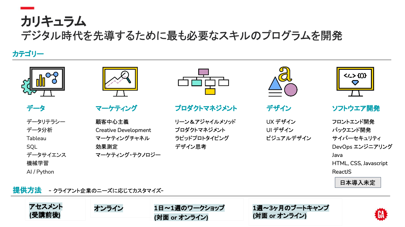 ディズニー社や世界最大の日用品メーカーであるP&Gといった名だたる大手企業のリスキリングを請け負う「General Assembly(以下、GA)」は、今後日本においてリスキリングのレベルを高めていくための課題について、「企業が行うリスキリングと経営戦略が結びついていないケースが多い点」、「人材への投資を決断できていない企業が多い点」といったポイントを指摘しています。