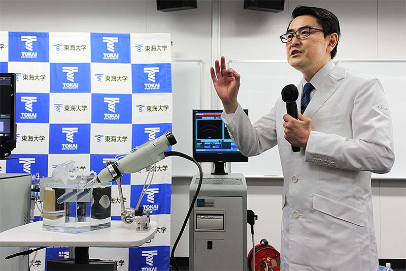 高密度焦点式超音波療法(HIFU:high intensity focused ultrasound/ハイフ)による治療デモンストレーションを、小路直 准教授がみせてくれた。