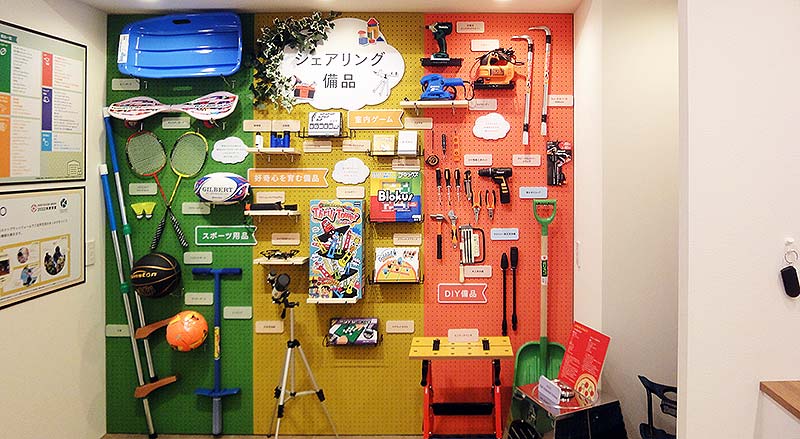 このマンションギャラリーでは、物件の詳細をはじめ、三芳町の魅力やローカル情報、多彩なシェアリング備品・防災用具なども展示中。