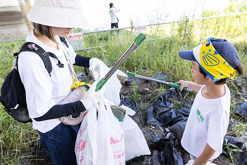 参加者のなかで4.1kgと最も多く高いポイントのゴミを拾った親子には、ユニクロのグローバルサステナビリティアンバサダー「ドラえもん サステナモード」の新デザイン商品(Tシャツ、ポケッタブルバッグ)などが贈られた。