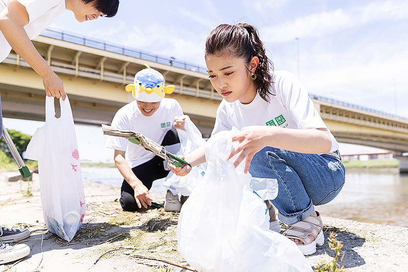 その第1回となるスポギョミ!東京開催が、6月5日、東京・北千住の荒川河川敷で開かれ、さかなクンと井上咲楽が、参加者たちと荒川河川敷のゴミ拾いを競い合った。