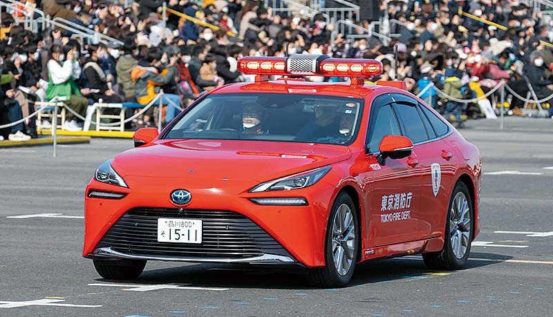 展示エリアには、日本初となる電気自動車の救急車や、水素で走る車両など、東京消防庁が所有する最新の消防車両も登場。