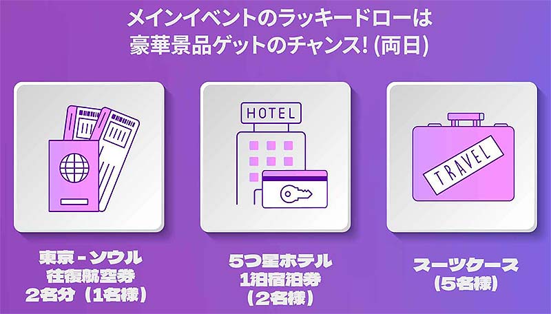 ソウルダイニングトークショーでは、ソウルで訪れるべきダイニングスポットを紹介し、ソウル-東京往復航空券ホテル宿泊券、ダイニング食事券などラッキードローを通じたプレゼントも。