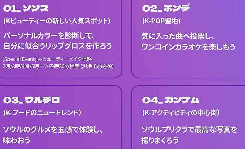 ソウルのおしゃれでトレンディなライフスタイルを「限定版ソウルエディション」として開催し、いましか出会えない情報を発信し、“今すぐ行きたくなる観光地”と感じるソウルの魅力を体感できるプログラムに。