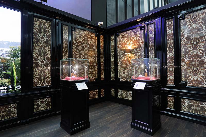 このルームは、ジュネーブの本店サロンにあるナポレオン・ルームの雰囲気を豊かに再現。また大スクリーンに映し出されるレマン湖の風景が来場者の目を楽しませてくれる。