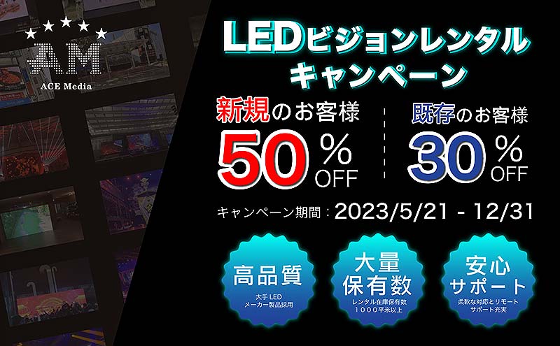 ACE Media が PANDASTUDIO.TV の LEDビジョンレンタル事業を引継ぎ、国内ネットワークをさらに強化。高品質大型LEDビジョンを低コストでレンタルできる基礎を固めた。