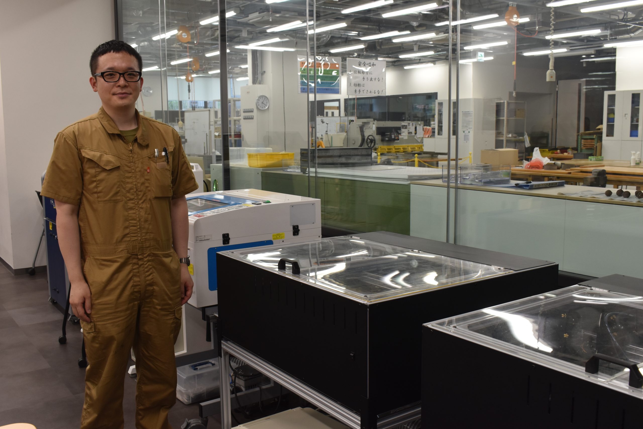 「当然、デザインに興味を持つ学生が多い。機械系だけでなく最近ではガジェット系に興味を持つ学生も。芸術学部がデザインした作品と工学部デザインサイエンス学科でデザインした機構を組み合わせて一つの動く作品を生み出すこともできる。学部学科を超えて連携できる環境は、学生にとって非常に有意義ではないか」と話すのは工学部デザインサイエンス学科講師の平社(ひらこそ)和也先生です。