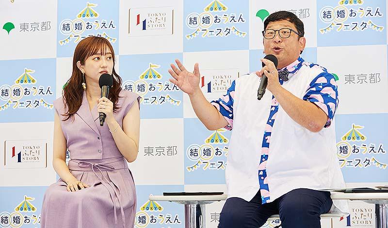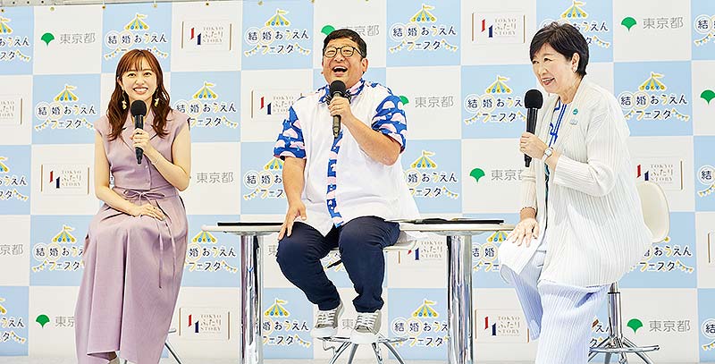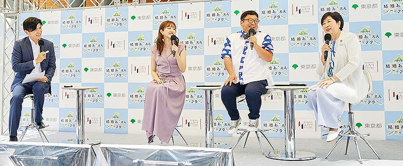 特設ステージには、小池百合子 東京都知事、婚活バスツアーで出会い結婚したチャンカワイや菊地亜美も登場。こんな結婚トークで盛り上がった。