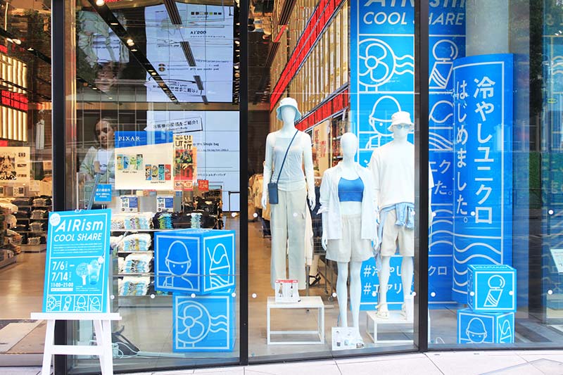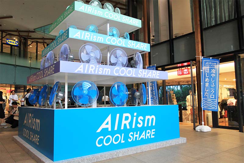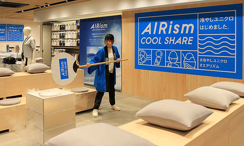 ユニクロ原宿店では、7月6~14日の9日間、クールシェアスポット「AIRism COOL SHARE」を開催。