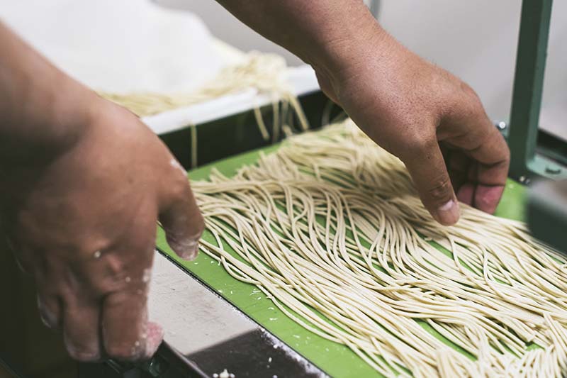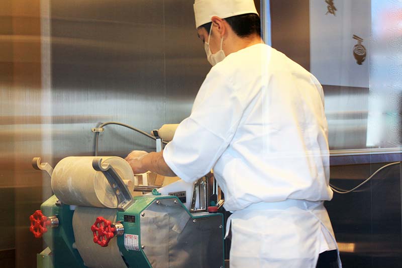 最もおいしい状態で蕎麦を体感してほしいという想いから、毎日店内で製麺し、注文を受けてから茹で上げる。