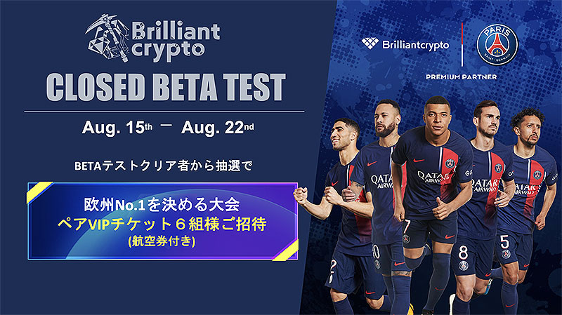 宝石の採掘で利益を得る新ブロックチェーンゲーム『Brilliantcrypto』は、8月15日から実施するβ版テストをクリアした人のなかから抽選で、欧州No.1を決める大会のパリ・サンジェルマンのホーム試合観戦ペアVIPチケット(航空券付き)を6組にプレゼント!