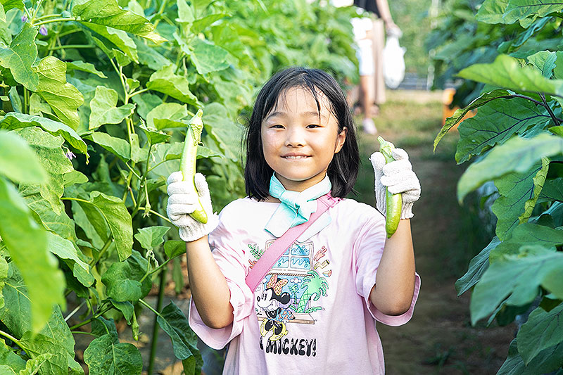 多彩な品種の夏野菜を収穫、おひとり様もグループも、夢中!