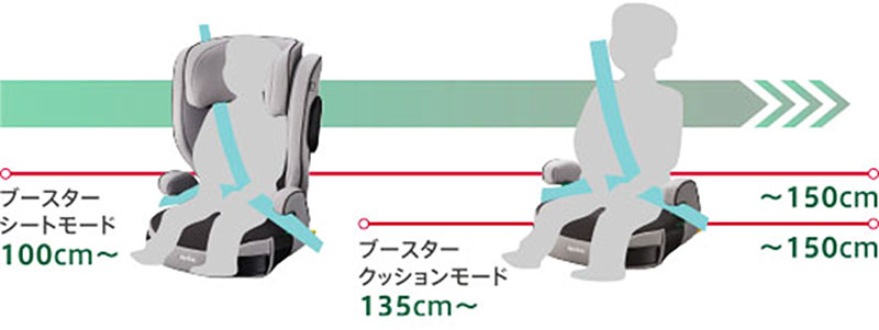 ◆100cm~150cm まで長く使える:お子様の成長に合わせた 2 つのモードのロングユース設計。座面のみのブースタークッションモードでも、新安全規則 R129 に適合。