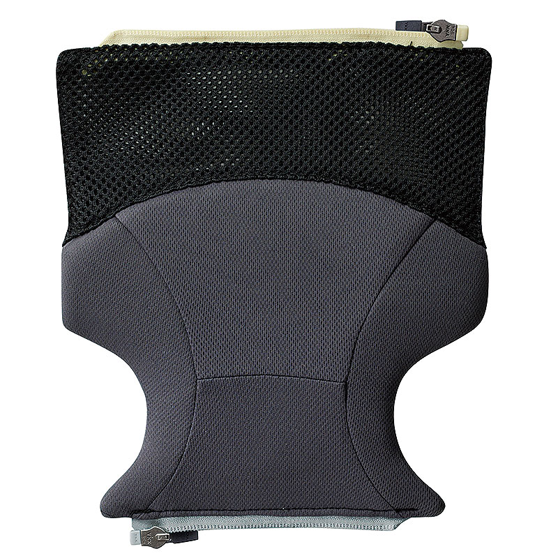 2 種類のメッシュを組み合わせ、赤ちゃんが汗をかきやすい背中の部分に穴が大きいメッシュを採用しました。