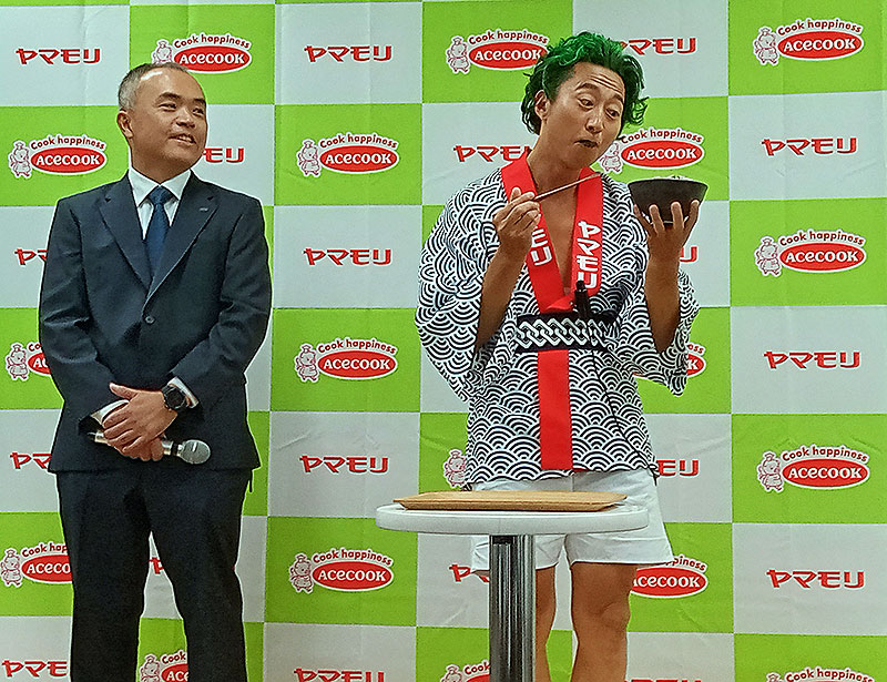 そんな石橋尊久出演の『わかめラーメシの素』新CMを観たエースコック 村岡寛人 専務取締役は、こう伝えて会場を沸かせた。