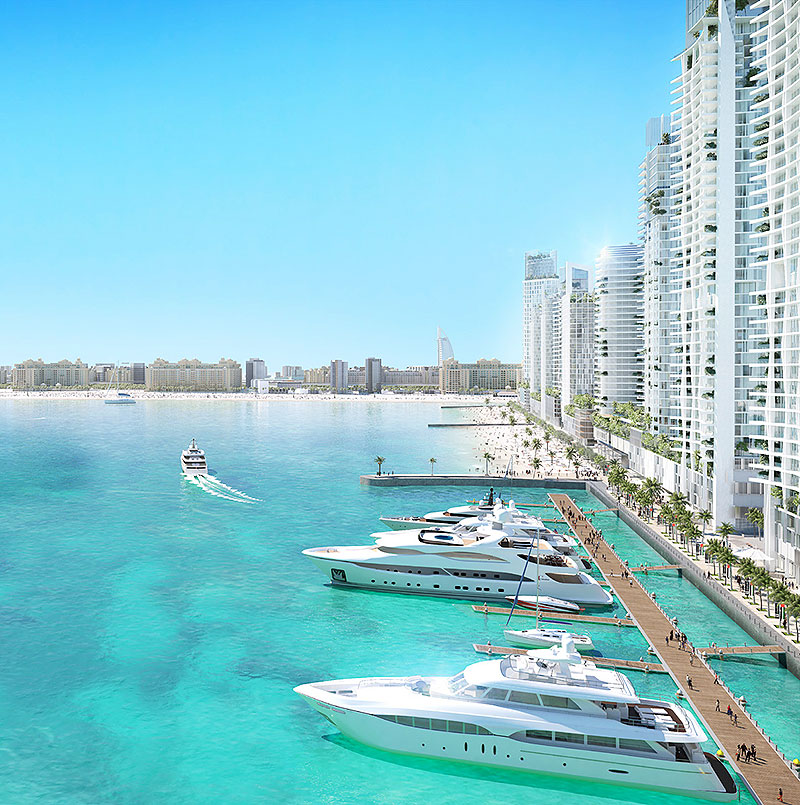 ドバイでは、土地供給の限られた海沿いの立地が人気で、とくにこの「ドバイ・ハーバー」は、ドバイ最大級のクルーザー停泊所があり、富裕層が集まることが期待できる。