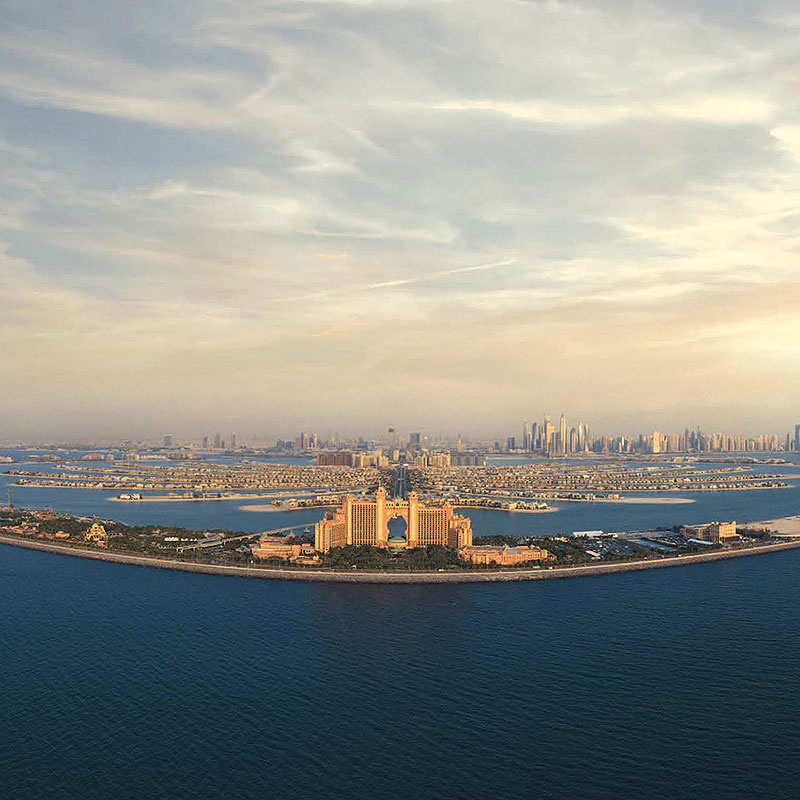 「パーム・ジュメイラ」は、ヤシの木を象ったドバイを象徴する世界最大の人工島。