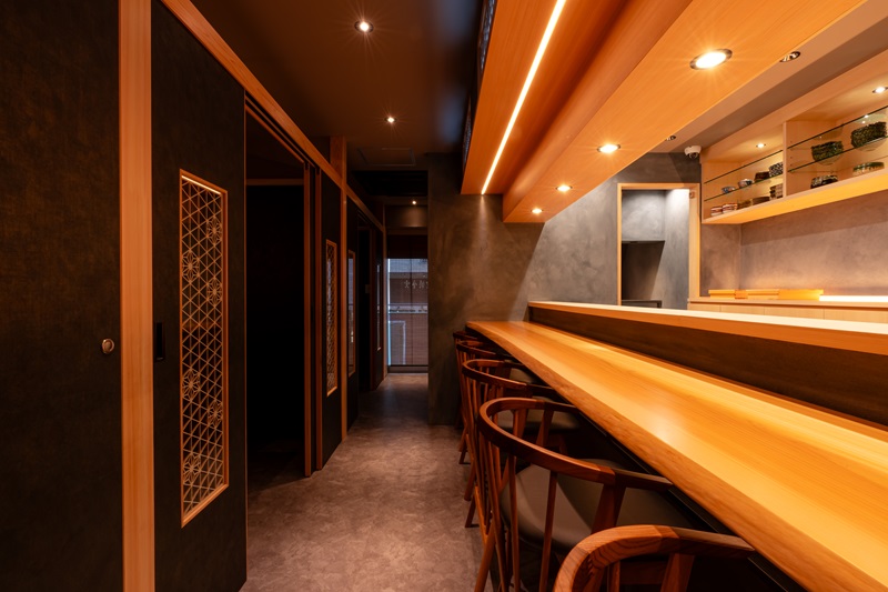 店舗を構えるのは「厳選焼肉 ここのみ」の2階。黒と木目を基調としたカジュアルな内装で、カウンター席のほかカウンター個室、通常の個室も揃える。恵比寿エリアの会食やデートにうってつけと言える。