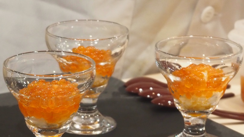 どれも間違いのない味だが、実際に試食したtokyochips編集部のおススメは穴子といくらの握り。穴子はその驚くべきふわふわの食感に舌が喜ぶ。いくらは追い鰹の風味が効いており、グラスの中に宝石のように散りばめられたその姿と合わせて楽しみたい一品だ。また芝海老のすり身が入った卵焼きは甘くて濃厚で、スイーツとしても十分に成立し得ると感じられた。