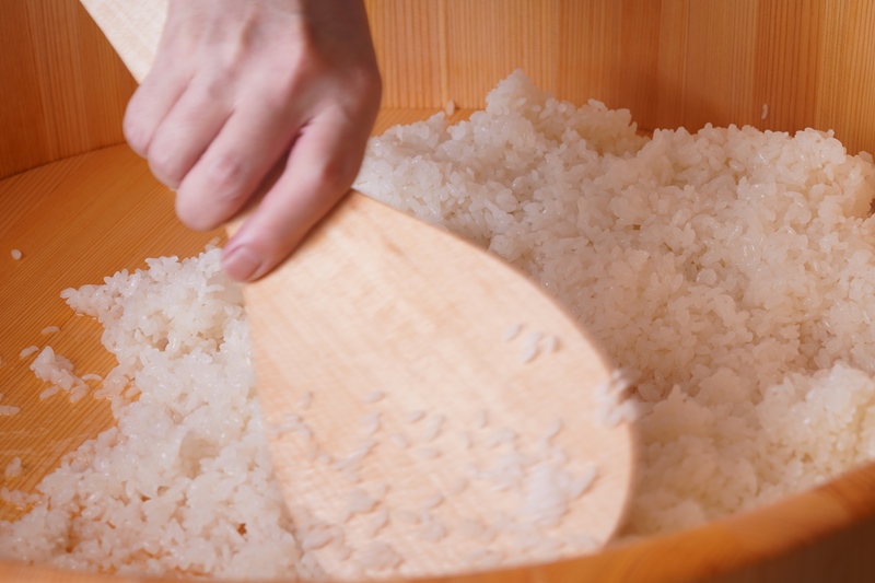 シャリには⻑野県佐久市産のコシヒカリを使⽤し、氷水から炊くことで張りを出す。合わせる酢は⾚酢だけでなく、⽶酢、合わせ酢というように、ネタに“より合う”シャリを⼤将が研究し、⼀貫⼀貫そのネタのベストな鮨の形を提供する。