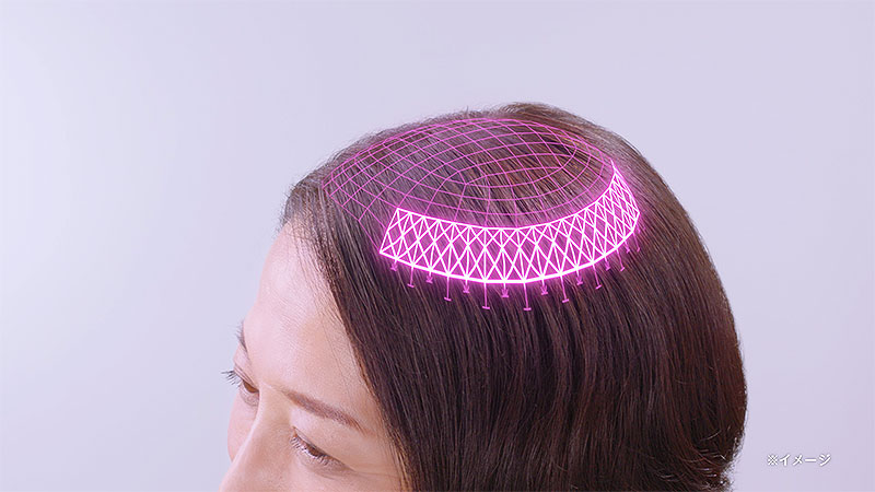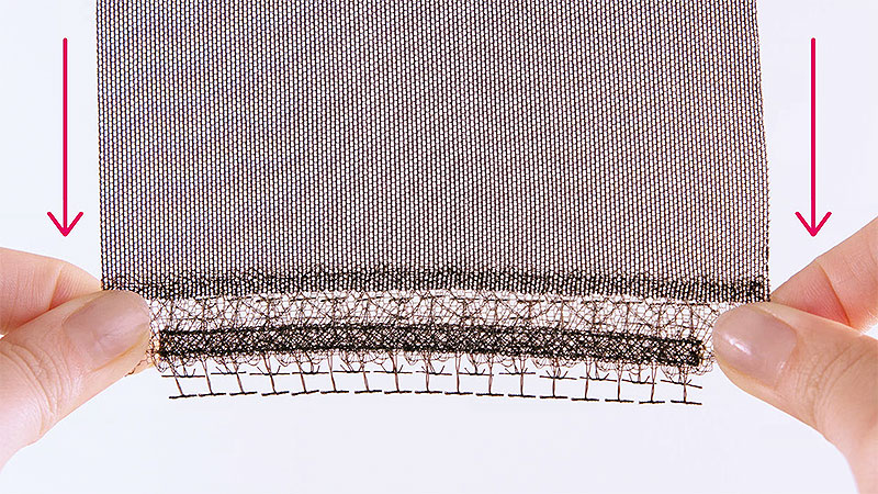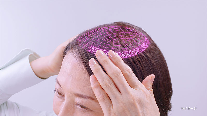 ストレッチ素材のベースネット伸縮の力で、自毛をしっかりキャッチし、ピンのかわりに自毛をキャッチする部分が「W プッシュ de フィット」に進化し、フィット感がさらにアップ。