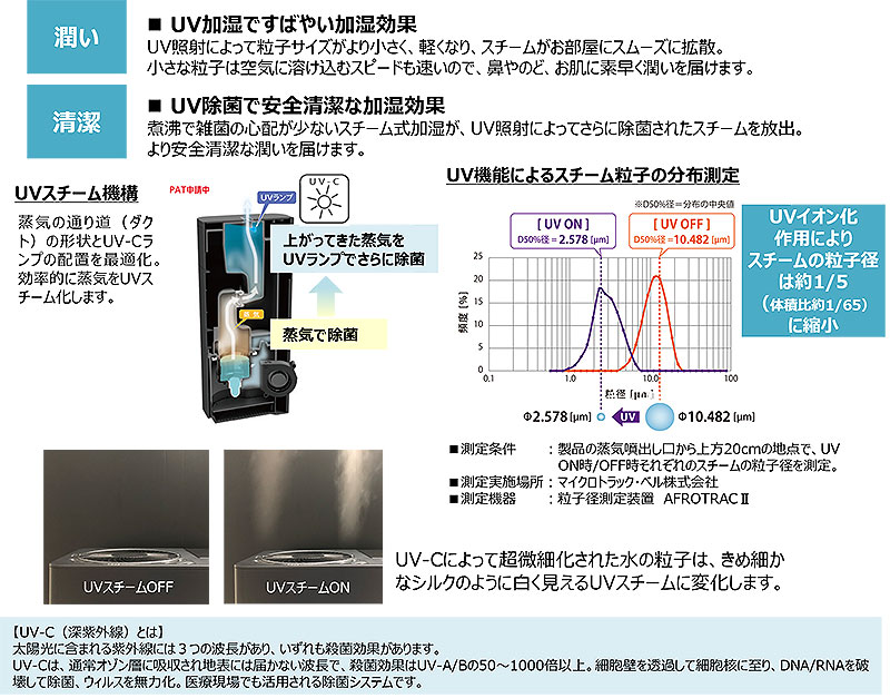 水蒸気放出直前に UV-C を直接照射し速攻加湿&衛生化
