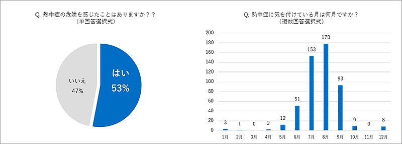 日本トリムが全国15歳以上男女200名に調査したところ、過半数が熱中症の危険を感じたことがあると回答し、熱中症のリスクが身近なものとして認識していた。