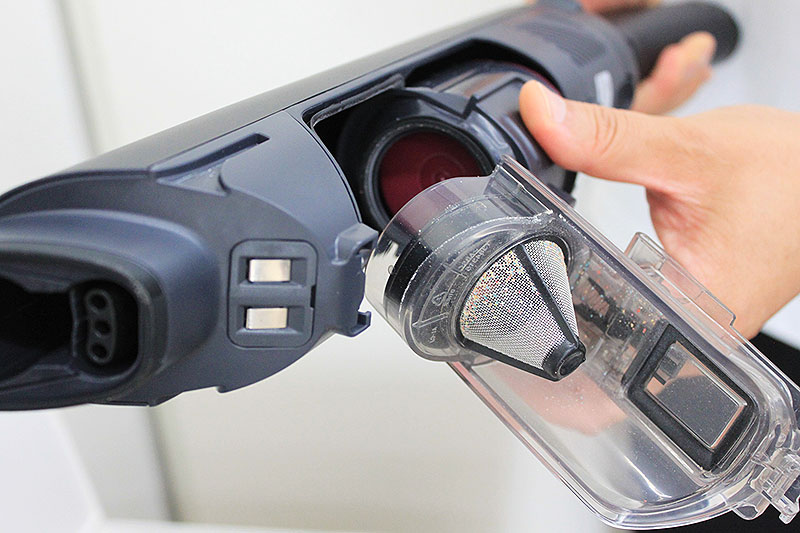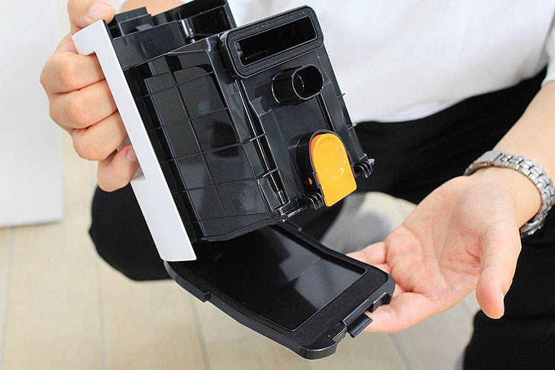 ◆紙パックが必要ないため、ランニングコストがかからないうえに、ダストボックスは 水洗いもできる。