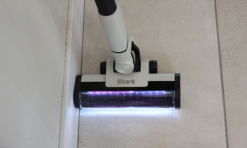 Shark EVOPOWER SYSTEM NEO の独自ヘッド「ハイブリッドパワークリーン」は、両脇に吸引気流が通る切れ込みがあることから、ヘッドの幅を超える両脇のゴミも吸引していく。
