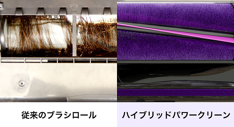 よりコンパクトになったヘッドで、狭い場所も簡単にお掃除でき、長い髪の毛もペットの毛もブラシロールに絡まない。これも実際に試してみると一発で「これほしい」と思うはず。