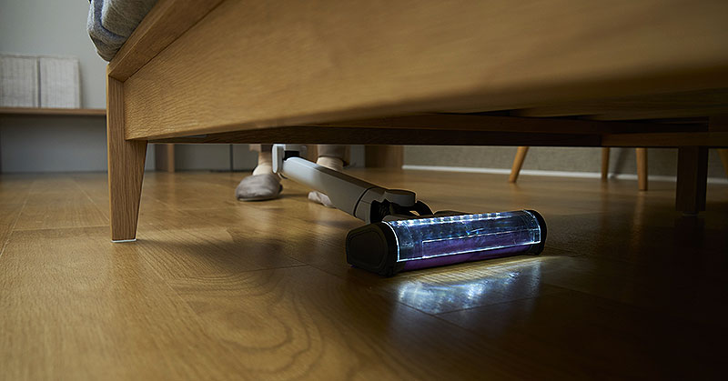 家具前に十分なスペースがなくても、パイプが曲がるためしっかり奥まで入り込み、ソファやベッド、テーブル、椅子といった脚付き家具の下のお掃除が一段と楽に。