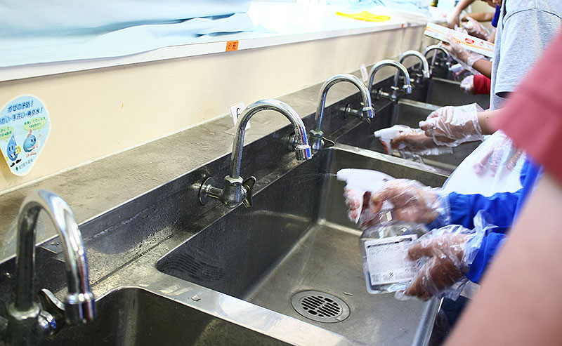 今回、「クエン酸を使って蛇口のカルキ汚れを落とす」と「過炭酸ナトリウム(オキシクリーン)を使って体操着についた汚れを落とす」という2つの実験を展開。