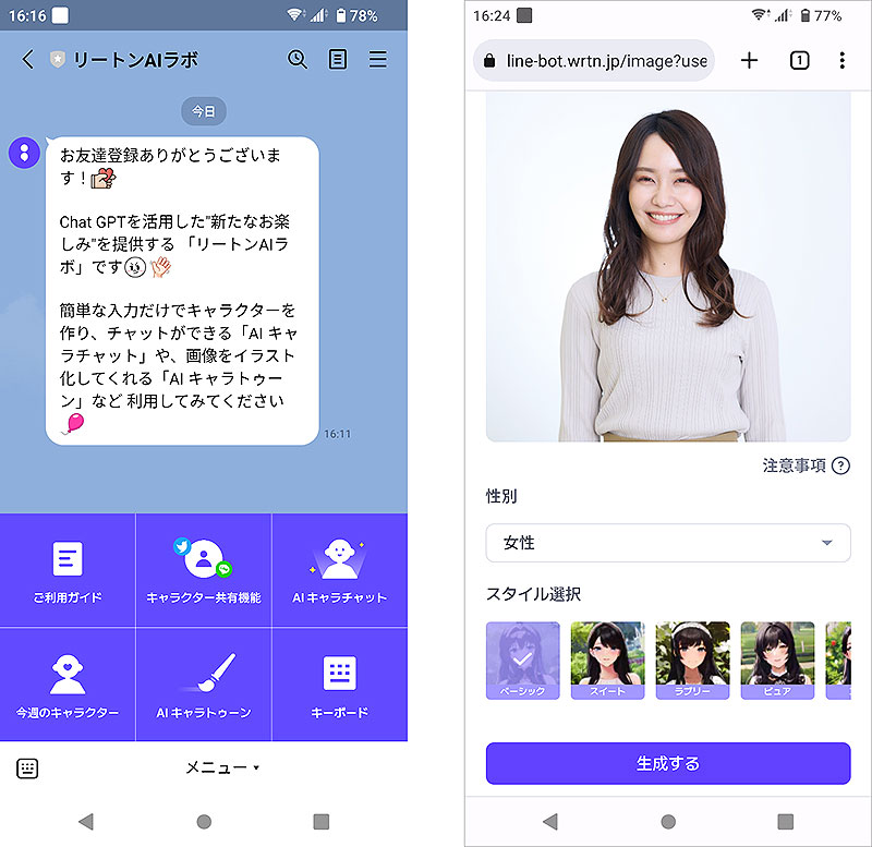 それが、LINE@リートンAIラボの「AIキャラトゥーン」