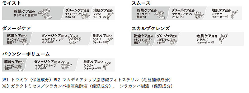 ◆ダメージケア:ダメージ補修し、なめらかなツヤ髪→ツバキオイル