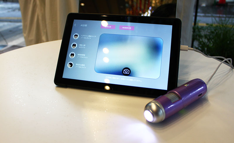 会場では、アナライザーが髪の空洞化リスクを診断してくれる。