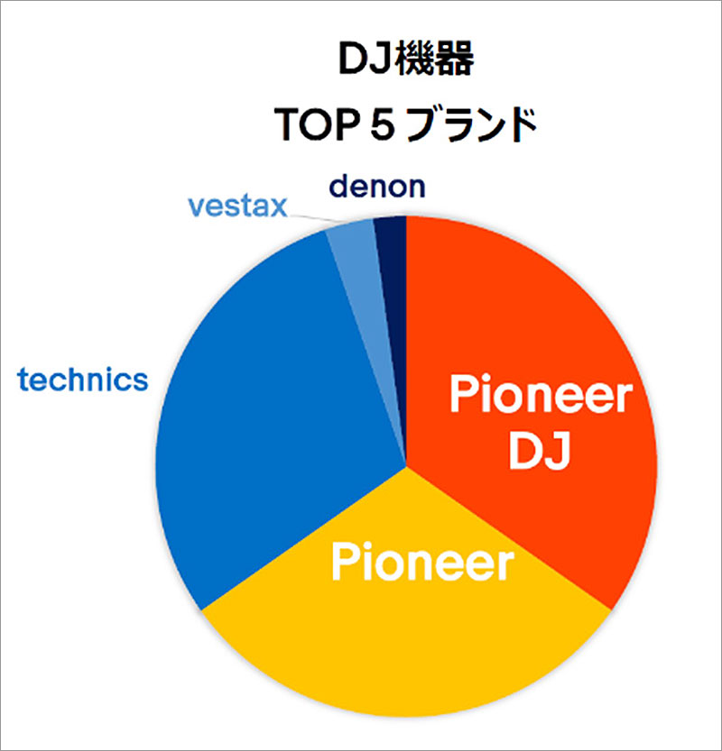 Pioneer や Technics、Vestax、Denon といった日本のブランドが人気の上位を占めている点にも注目。