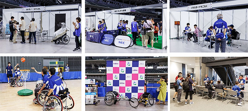 パラスポーツすごろく体験、紙製のVR専用ゴーグル作成のワークショップ、ボッチャ体験、義足体験や車いすバスケットボール体験ができるブースなど、パラスポーツを見るだけでなく実際に体感できるコーナーも多数出展された。