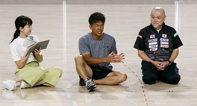 リズムに合わせた準備運動や簡単なミニゲームを行ったあと、ゲストの3人も競技に挑戦。